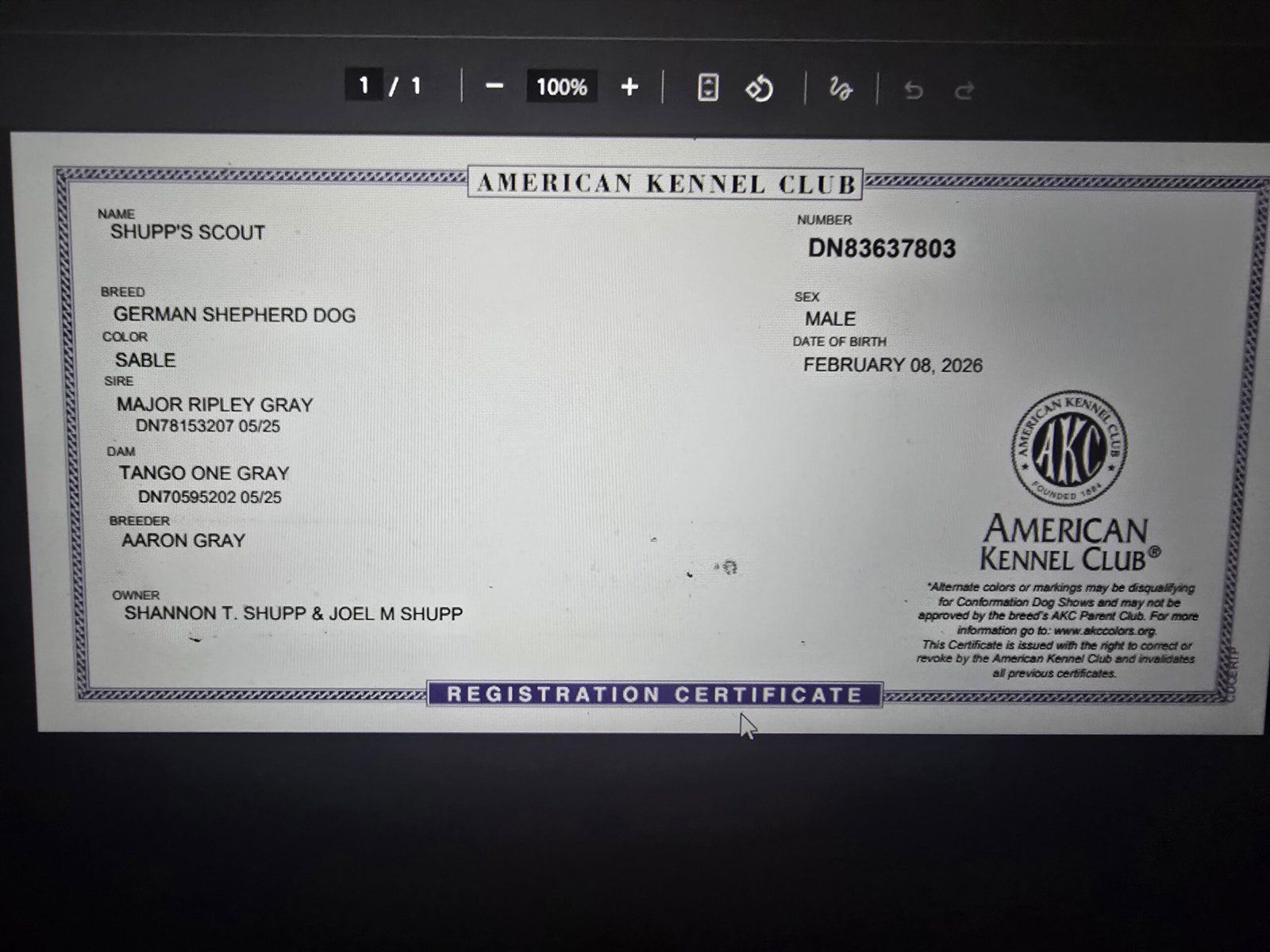 AKC # DN82633404
